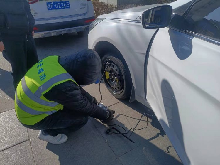 近日,市人民醫(yī)院停車場班組在日常維持場內(nèi)交通中發(fā)現(xiàn)一輛即將駛出停車場的白色轎車左前輪胎爆胎,嚴(yán)重影響行車安全,隨即引導(dǎo)車輛靠邊停車,詢問后得知這一對駕車來醫(yī)院探望病人的年輕夫妻竟對爆胎的事情全然不知,駕駛員小伙子是新手也不知道如何更換備胎。班長吳懷松同志當(dāng)機(jī)立斷,從黨員愛心服務(wù)站中拿出千斤頂和充氣泵,指揮人員以最快的速度更換了備胎、補(bǔ)足了胎壓,并叮囑他們到最近的維修點補(bǔ)胎或更換新輪胎,保證行車和人身安全。