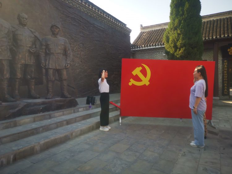 黨員們面對(duì)淮海戰(zhàn)役英勇犧牲的戰(zhàn)士照片前駐足默哀,向革命先烈們敬禮!在總前委銅塑雕像前新黨員們莊嚴(yán)宣誓,老黨員重溫入黨初心!在黨的領(lǐng)導(dǎo)人題詞的烈士紀(jì)念碑前久久凝視,不忍離去!