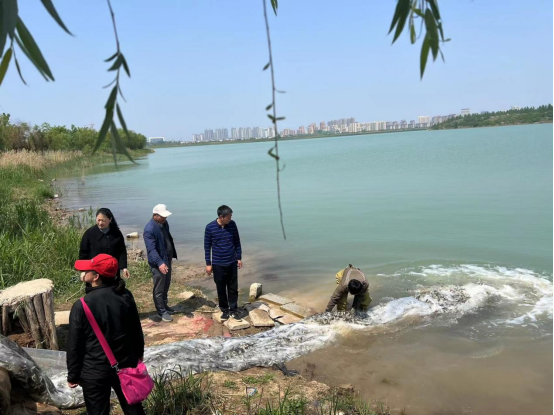 為改善水域生態(tài)環(huán)境,養(yǎng)護水生生物資源,2023年4月26日,南湖公園公司配合淮北市水產(chǎn)技術(shù)中心在中湖南岸開展魚類增殖放流活動,近5萬尾放流魚類被放入中湖水域。