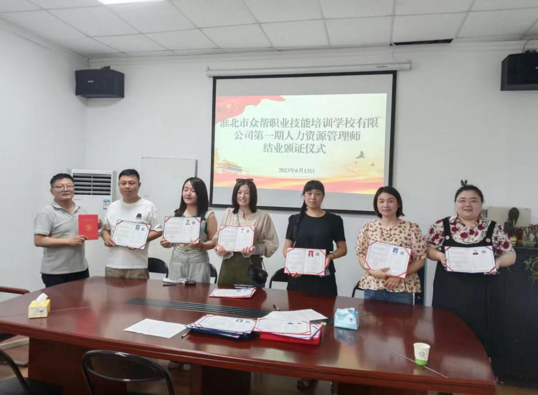 2023年6月13日,勞代公司淮北市眾幫職業(yè)技能培訓學校為第一期38名學員頒發(fā)了企業(yè)人力資源管理師證書,通過率達99%。我校利用周末時間以線上+線下結合的教學模式開展企業(yè)人力資源管理師培訓,培訓教師通過舉實例、現(xiàn)場提問、模擬現(xiàn)實場景的方法,宣講了從事企業(yè)人力資源管理工作的方法和經驗,進一步提升了培訓學員的工作能力,規(guī)范了學員在從事企業(yè)人力資源管理工作中的操作方法和工作流程。形成“培訓—技能提高—企業(yè)發(fā)展—再培訓”的發(fā)展模式,讓學員真正做到學以致用。