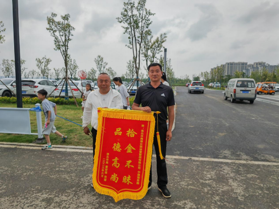 2023年6月17日晚上8點(diǎn),南湖公園公司中湖項(xiàng)目部保安趙新代在金沙戲水沙灘巡查當(dāng)中撿到價(jià)值九千多塊的蘋果手機(jī)一部,第一時(shí)間將情況匯報(bào)至公司物業(yè)群里,并積極主動(dòng)嘗試聯(lián)系失主。通過多方打聽當(dāng)晚終于物歸原主,失主找回手機(jī)后十分激動(dòng),為了表示感謝,失主第二天送來錦旗一面。