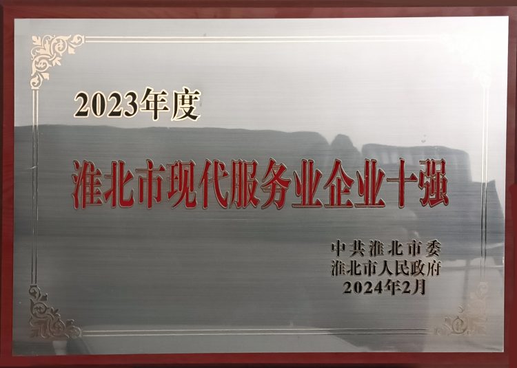淮北市建投商貿(mào)有限公司再次榮獲全市“現(xiàn)代服務(wù)業(yè)企業(yè)十強(qiáng)”榮譽(yù)稱號(hào)