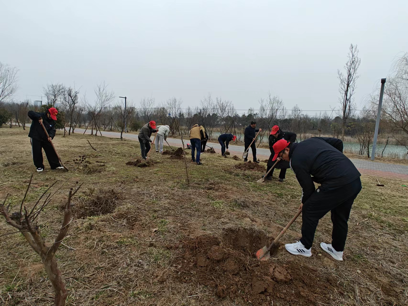 冒著毛毛細雨,南湖傳媒黨支部全體黨員前往南湖公園進行活動。他們有的拿著夾子和掃帚,對公園道路兩側及草坪內的垃圾、紙屑、煙頭進行清理。有的前往“植樹區(qū)”進行挖坑、培土、澆水。每個人都奮力在自己“崗位”上,為打造美好家園貢獻自己的力量。