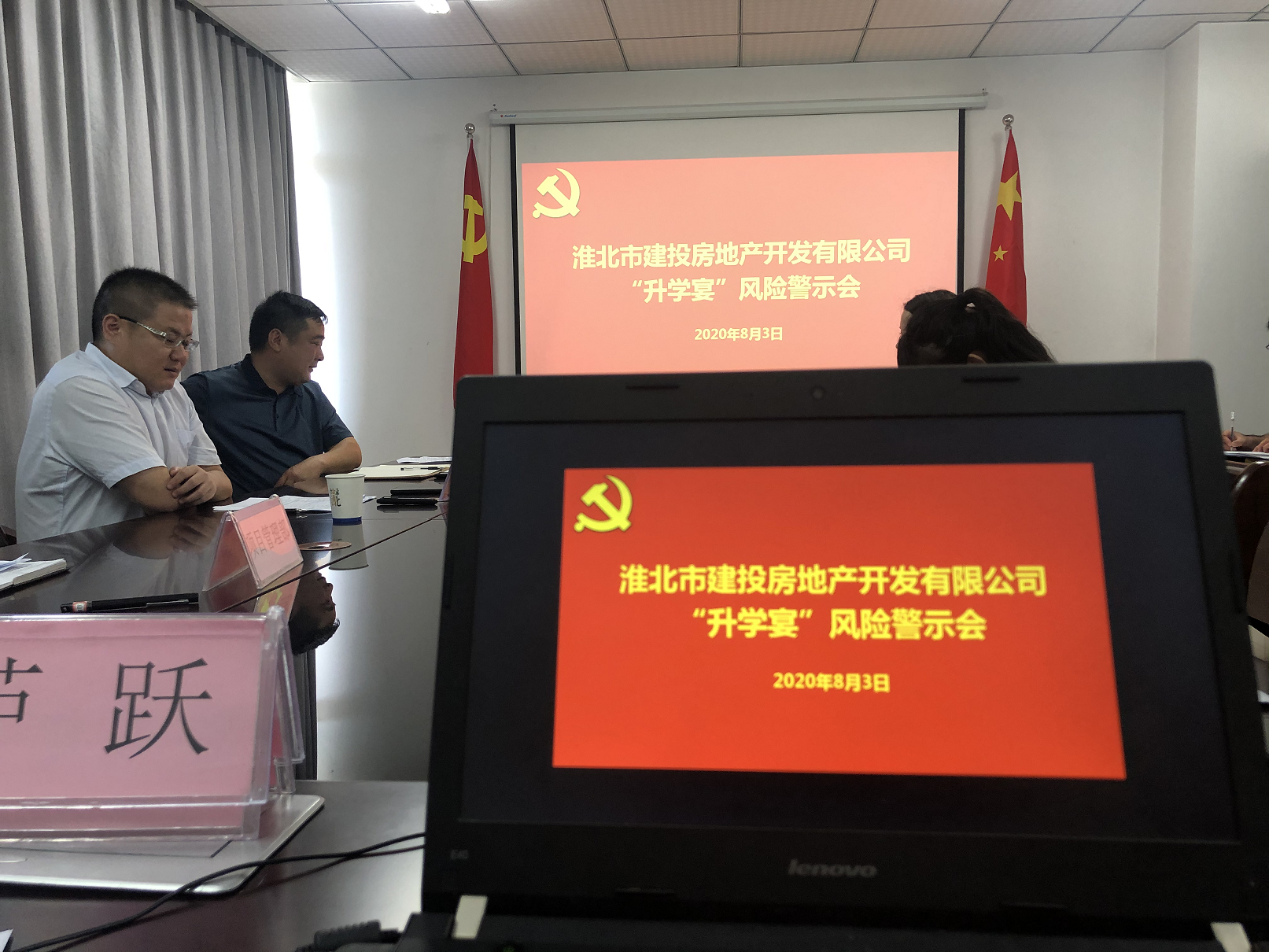 為狠剎“升學(xué)宴”等不正之風(fēng),8月3日,房地產(chǎn)公司組織召開“升學(xué)宴”風(fēng)險警示會,堅持把紀(jì)律和規(guī)矩挺在前面,劃紅線、敲警鐘,提前“亮紅燈”給“升學(xué)宴”去火降溫。