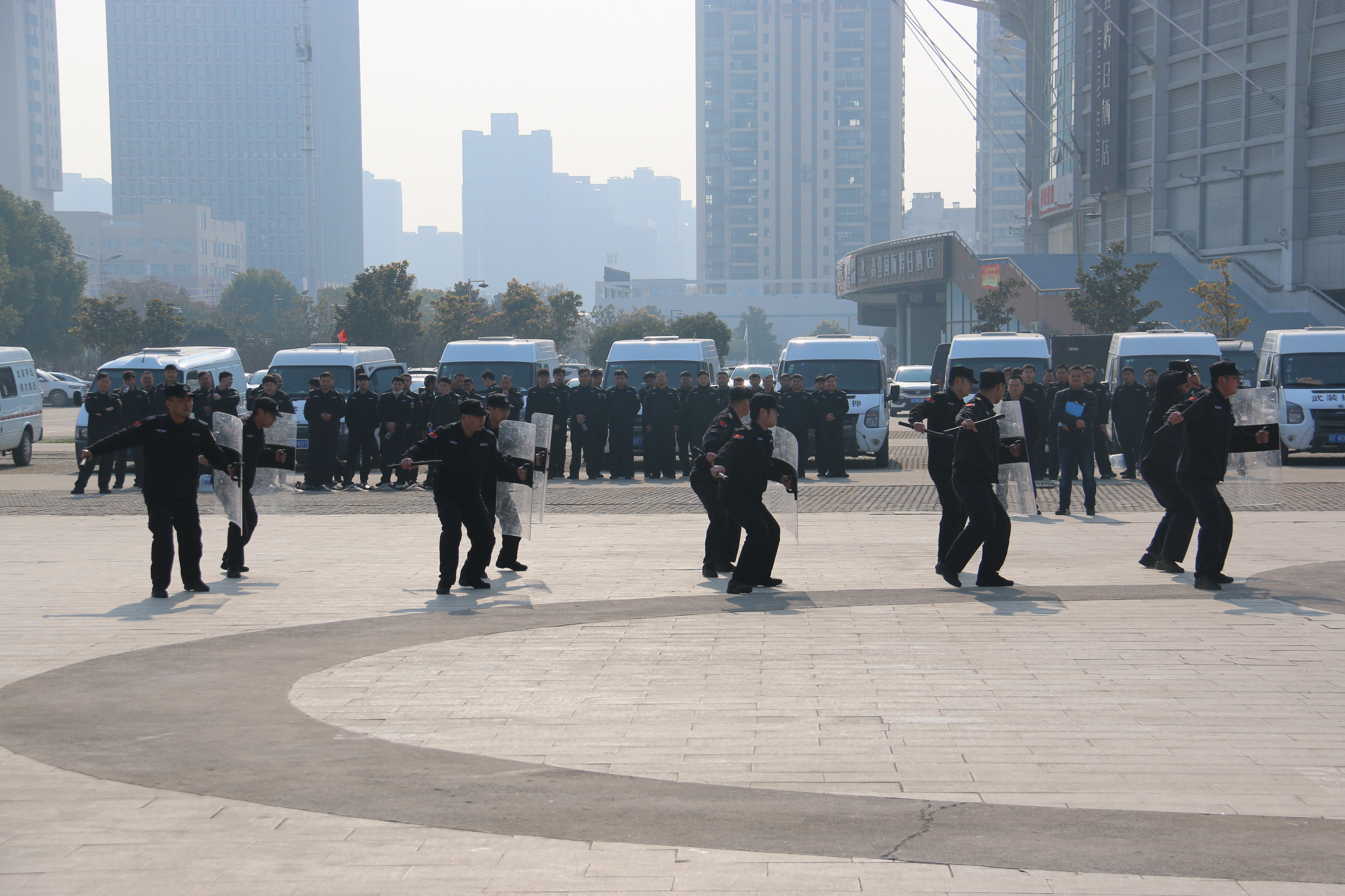 此次實(shí)操演練技能比武活動(dòng),既是年度考核的重要組成部分,也是對(duì)各中隊(duì)日常軍事訓(xùn)練和專業(yè)技能水平的實(shí)際檢驗(yàn)。演練比武課目設(shè)置突出實(shí)戰(zhàn)化要求,分為軍事隊(duì)列、擒敵拳術(shù)表演、警棍盾牌、棍術(shù)。演練參賽的5支隊(duì)伍以各中隊(duì)為單位,全部由基層隊(duì)員抽組而成。在隨后進(jìn)行的過程中,節(jié)奏緊湊、動(dòng)作流暢、搏斗精彩,贏得了臺(tái)下觀眾陣陣喝彩和掌聲。公司總經(jīng)理作了總結(jié)發(fā)言,希望大家把技能比武的內(nèi)容真正運(yùn)用到實(shí)際工作中去,真正貫穿到平時(shí)的軍事訓(xùn)練之中。希望能夠打造一支技能過硬的保安隊(duì)伍,更好地完成崗位工作任務(wù),為促進(jìn)社會(huì)安全和諧穩(wěn)定做出更大貢獻(xiàn)。