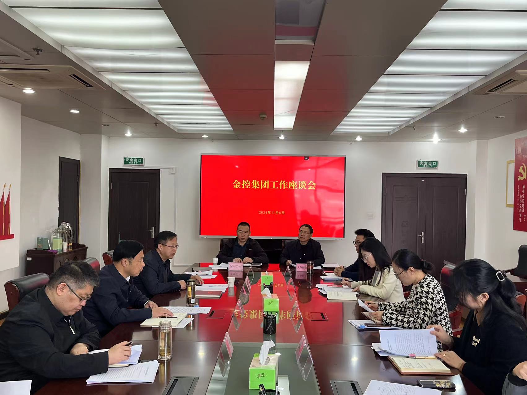 11月8日上午,市建投集團(tuán)黨委書(shū)記、董事長(zhǎng)王永濤至金控集團(tuán)開(kāi)展調(diào)研工作,旨在深入了解金控集團(tuán)的經(jīng)營(yíng)狀況和發(fā)展戰(zhàn)略。市建投集團(tuán)黨委委員、副總經(jīng)理、金控集團(tuán)黨總支書(shū)記張立哲陪同王永濤一行參觀(guān)了金控集團(tuán)各子公司的辦公環(huán)境,并主持召開(kāi)金控集團(tuán)工作座談會(huì)。市建投集團(tuán)黨委委員、紀(jì)委書(shū)記、監(jiān)察專(zhuān)員姜斌出席會(huì)議,市建投集團(tuán)辦公室(黨委辦公室、董事會(huì)辦公室)、黨群工作部(人力資源部)、經(jīng)營(yíng)管理部、財(cái)務(wù)部、資金管理部負(fù)責(zé)同志、金控集團(tuán)各部室、下屬子公司主要負(fù)責(zé)同志列席會(huì)議。