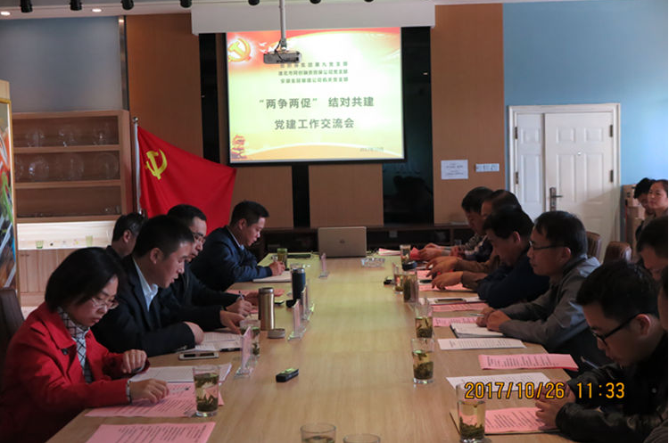 10月26日,同創(chuàng)融資擔(dān)保黨支部與安徽省信用擔(dān)保集團(tuán)有限公司第九黨支部及安徽省金冠玻璃有限責(zé)任公司機(jī)關(guān)黨支部,在安徽省金冠玻璃有限責(zé)任公司黨員活動(dòng)室開(kāi)展“兩爭(zhēng)兩促”,結(jié)對(duì)共建黨建工作交流活動(dòng)。