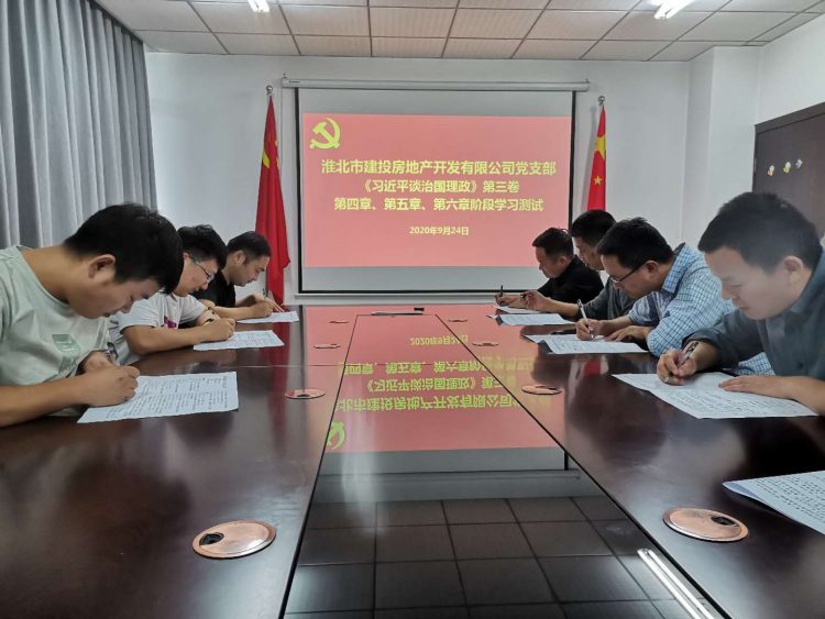 房地產(chǎn)黨支部9月24日組織全體黨員、入黨積極分子在會(huì)議室開展《習(xí)近平談治國理政》第三卷重要知識(shí)點(diǎn)測(cè)試。