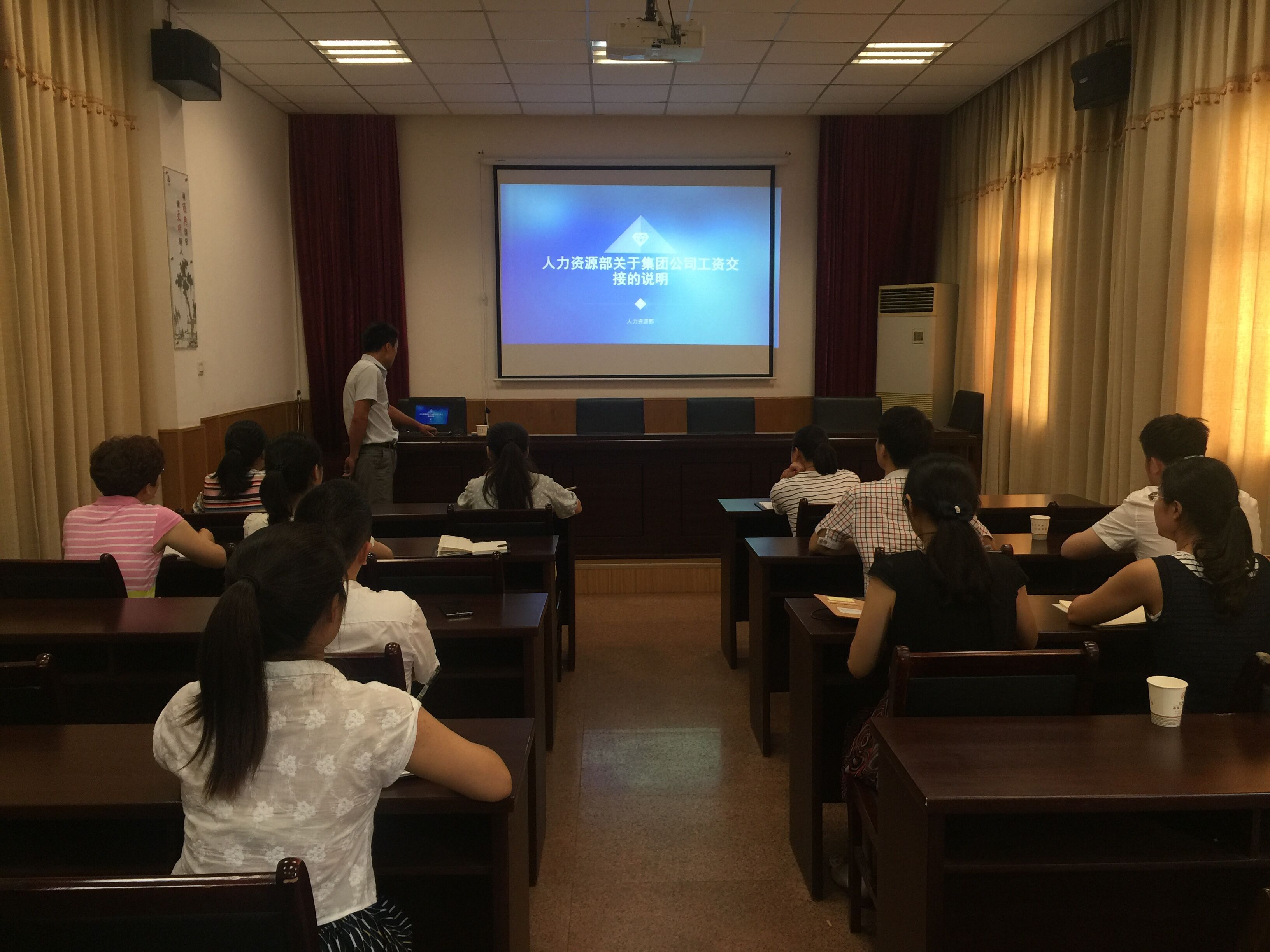 會(huì)上,人力資源部唐海峰通過(guò)PPT模式,對(duì)工資中的基薪、預(yù)支效益薪、勞務(wù)派遣人員費(fèi)用制作等三部分工作進(jìn)行了詳細(xì)的介紹。