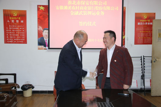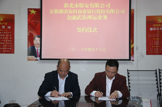 淮北市保安有限公司與安徽濉溪農(nóng)村商業(yè)銀行股份有限公司舉行金融武裝押運業(yè)務(wù)簽約儀式