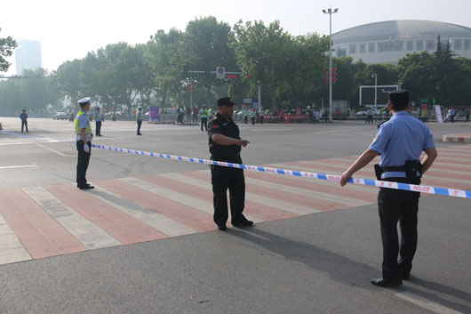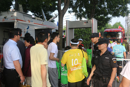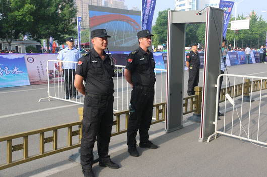 13日凌晨5:30分,負(fù)責(zé)市府廣場(chǎng)周邊區(qū)域的安保人員全部到崗。運(yùn)動(dòng)員入口安全檢查、重要部位值守、秩序維持、車(chē)輛指引、賽道沿線封閉防控等安保工作有序進(jìn)行。