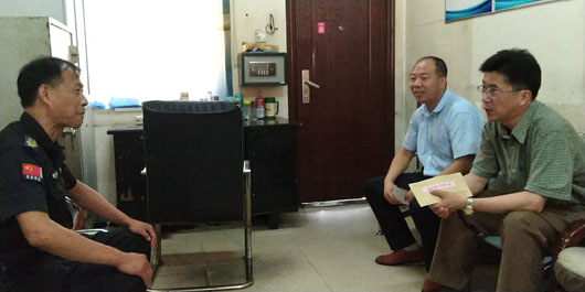 在中國(guó)共產(chǎn)黨成立97周年之際,7月13日上午,集團(tuán)公司黨委委員、紀(jì)委書(shū)記王獻(xiàn)忠在淮北市保安有限公司黨支部書(shū)記、副書(shū)記的陪同下來(lái)到押運(yùn)一中隊(duì)看望慰問(wèn)生活困難的老黨員,送去黨組織的關(guān)懷和溫暖。他要求各級(jí)黨組織要懷著深厚感情,用心用情為困難老黨員排憂解難,讓廣大老黨員和困難黨員切實(shí)感受到黨組織的關(guān)懷與溫暖。