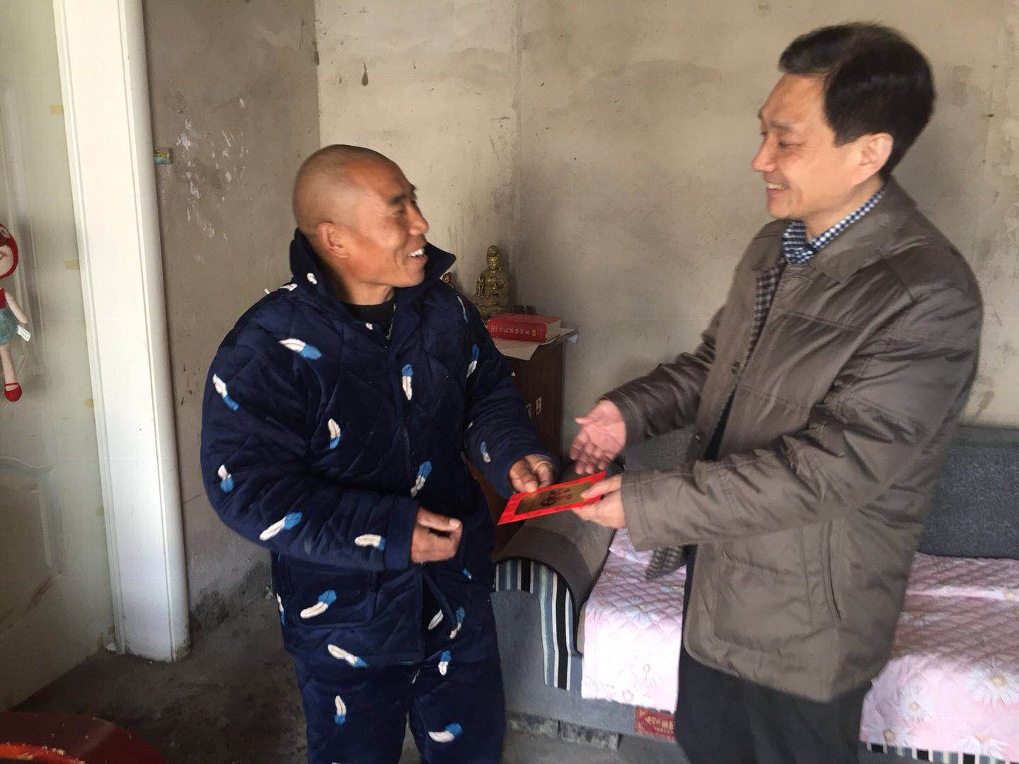 在春節(jié)來(lái)臨之際,為了讓幫扶對(duì)象張如龍和黃明愿兩家度過(guò)一個(gè)愉快祥和的佳節(jié),2019年1月31日下午,集團(tuán)公司黨委專職副書記陳偉同志一行前往火神廟村親切走訪慰問,并為貧困戶家庭送去了新春祝福與慰問金。陳書記每到一戶困難群眾家中,都親切詢問他們目前的生活情況,引導(dǎo)鼓勵(lì)大家樹立信心,樂觀生活,喜迎佳節(jié)。一直以來(lái),集團(tuán)公司包保幫扶第三小組以實(shí)際行動(dòng)踐行企業(yè)社會(huì)責(zé)任與擔(dān)當(dāng),切實(shí)將扶貧工作做精、做準(zhǔn)、做實(shí)。