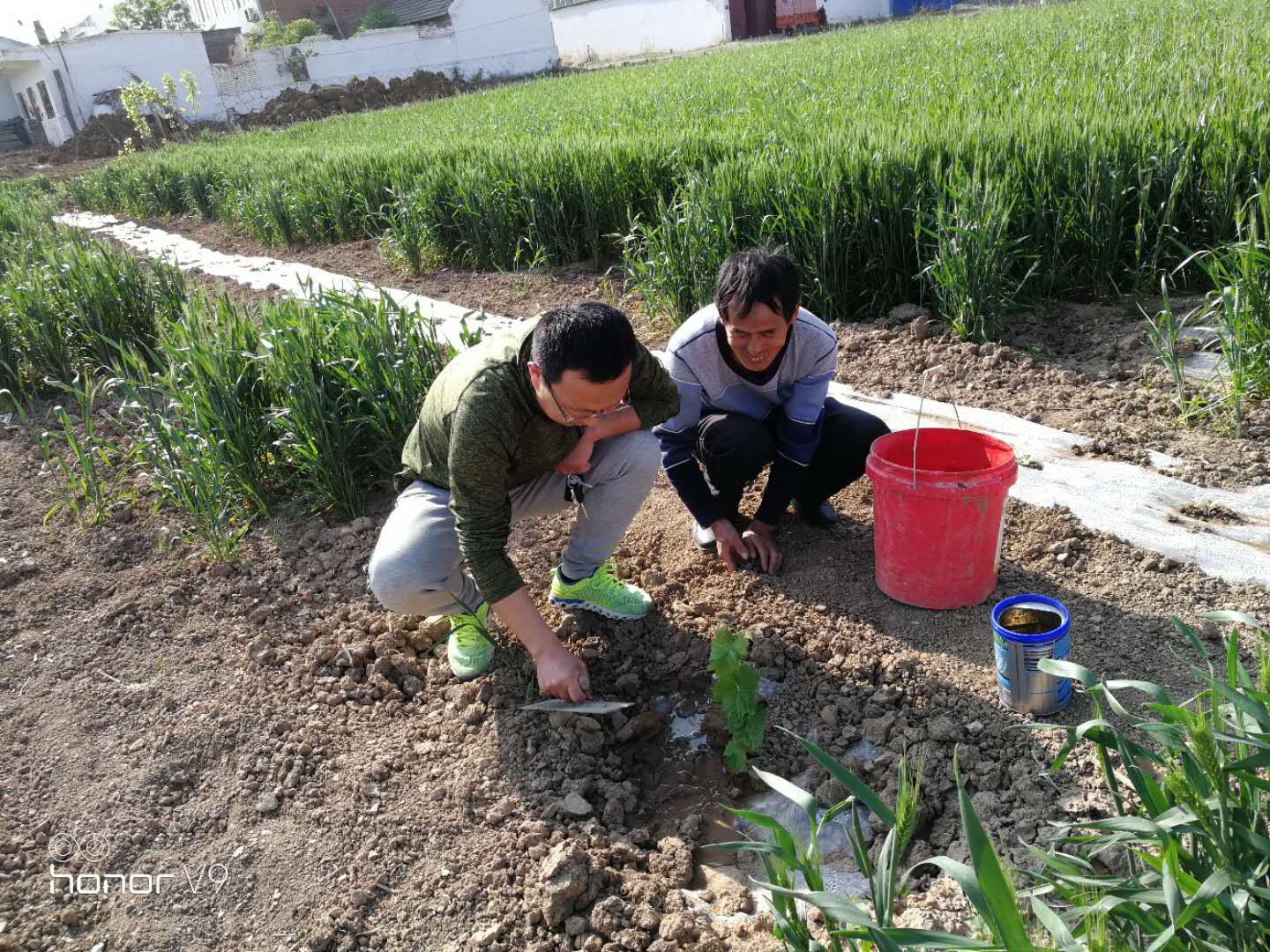 眼下春光正好,正是為果樹苗追肥除草的好時節(jié)。4月26日,城泊公司幫扶小組趕赴火神廟村扶貧戶家中,為已經(jīng)種下的100株扶貧葡萄樹苗進行了施肥除草。