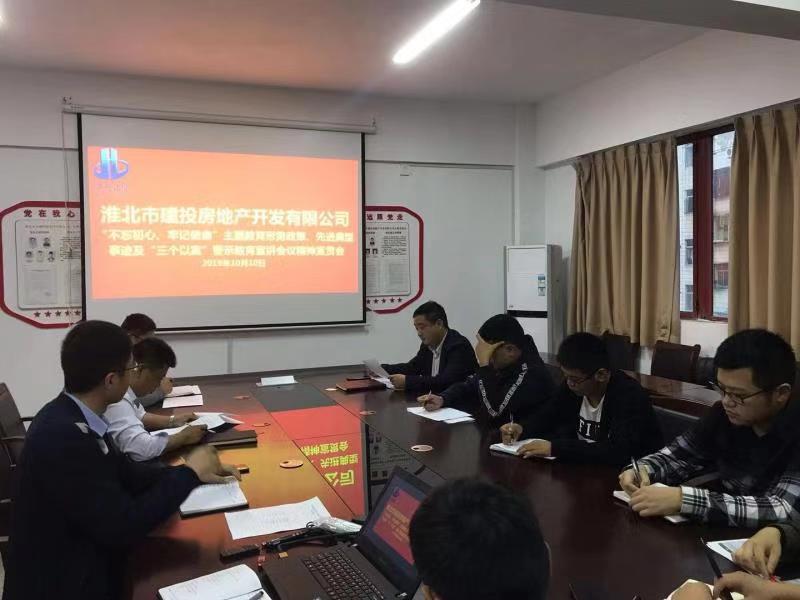 10月10日下午,房地產(chǎn)公司召開專題會議,傳達(dá)學(xué)習(xí)集團(tuán)公司“不忘初心、牢記使命”主題教育形勢政策、先進(jìn)典型事跡及“三個以案”警示教育宣講會議精神,對貫徹落實會議精神進(jìn)行安排部署,公司領(lǐng)導(dǎo)班子成員、各部室負(fù)責(zé)人及各項目部項目經(jīng)理參加了會議。
