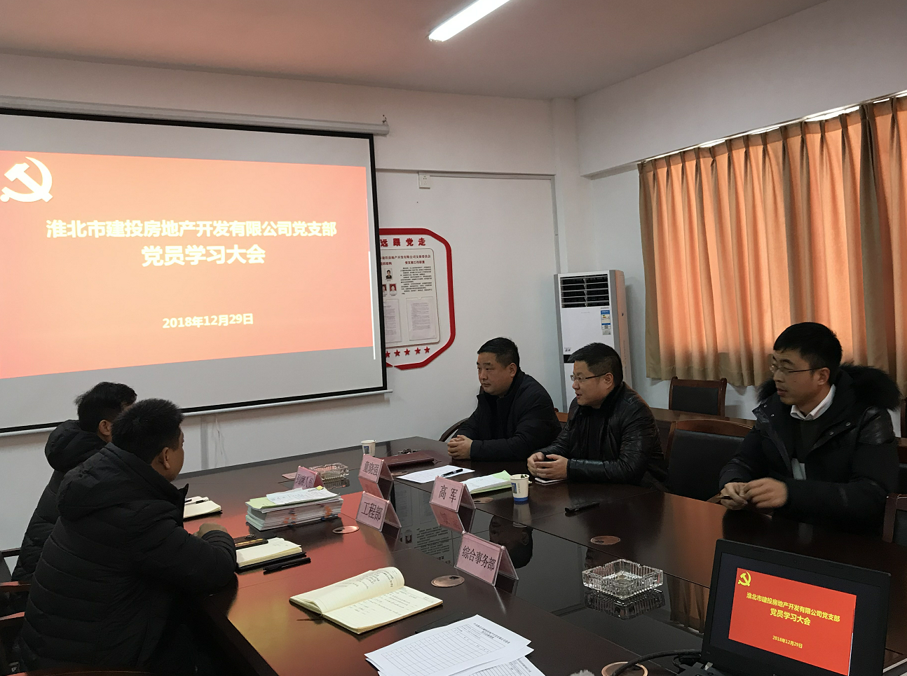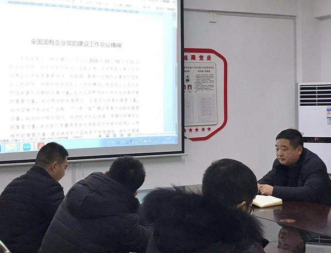 2018年12月29日下午,房地產(chǎn)公司召開支部學(xué)習(xí)會,學(xué)習(xí)傳達全國全省國有企業(yè)黨的建設(shè)工作會議精神。