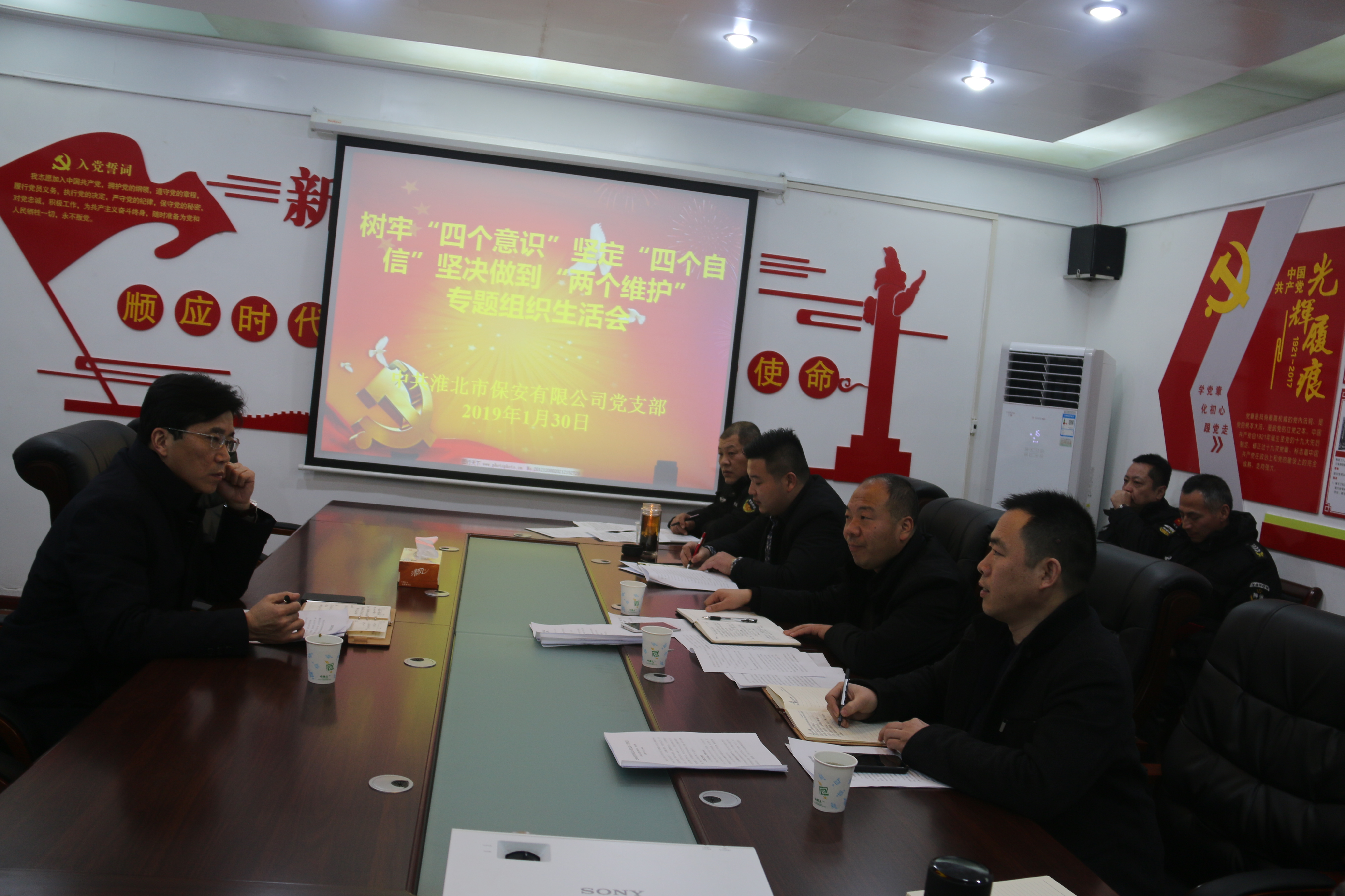 1月30日下午,淮北市保安公司黨支部召開(kāi)了2018年度樹(shù)牢“四個(gè)意識(shí)”,堅(jiān)定“四個(gè)自信”,堅(jiān)決做到“兩個(gè)維護(hù)”專(zhuān)題組織生活會(huì)。集團(tuán)公司黨委委員、紀(jì)委書(shū)記王獻(xiàn)忠以普通黨員的身份參加了會(huì)議,會(huì)議由保安公司黨支部書(shū)記余永明主持。