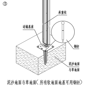 安裝地點為松軟沙地、泥地或草地使用鋼釬;